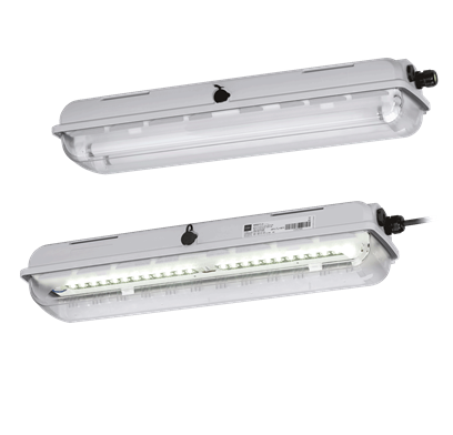 Armature illuminanti lineari a LED per Zona 1 e Zona 2 (o 21 e 22 per polveri) da 18W (3000lm), 35W (5900lm) e 50W (8350lm) con corpo in GRP e coperchio in policarbonato, garantiscono la massima efficienza luminosa e abbattono i costi di manutenzione e gestione garantendo inoltre un grande risparmio energetico (possibilità di utilizzo del protocollo DALI e della funzione d’emergenza con batteria tampone a bordo). Sono disponibili nella versione IIB e IIC con certificati ATEX, IECEx, PESO e EAC e risultano idonee per l’installazione in ambienti aggressivi e con temperature da -40°C a +60°C.