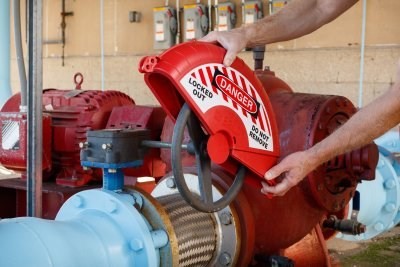 Il sistema di chiusura per valvole a saracinesca può bloccare valvole fino a 457 mm di diametro per isolare o mettere in sicurezza il flusso di energia o di altre sostanze erogato ai macchinari. Ogni operatore incaricato di eseguire interventi su un macchinario può applicare un lucchetto al dispositivo per bloccare una valvola a saracinesca in posizione off durante le operazioni di manutenzione. Così facendo, evita che altri operatori possano riattivare involontariamente il macchinario. I sistemi di chiusura richiudibili possono anche essere utilizzati per mettere in sicurezza il flusso d’acqua erogato ai sistemi antincendio.