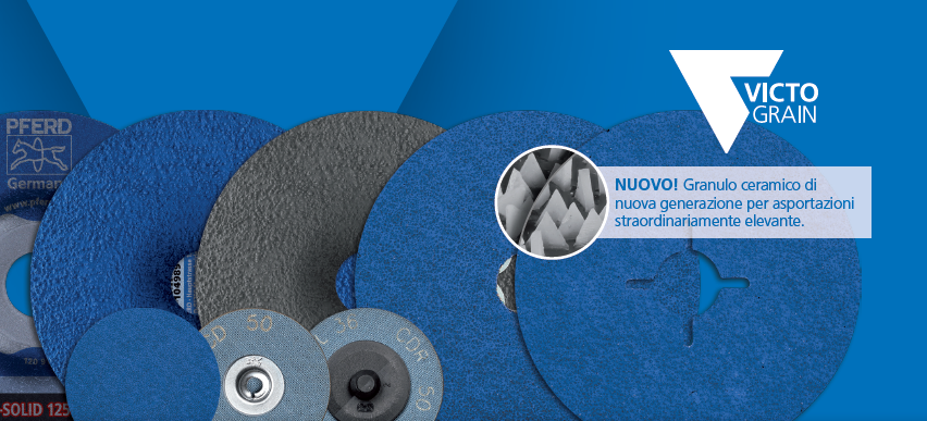 I granuli di PFERD sono fissati alla base tramite un angolo dello stesso, risultando ben integrati e lasciando un grande spazio tra un granello e l’altro al fine di favorire lo scivolamento del truciolo