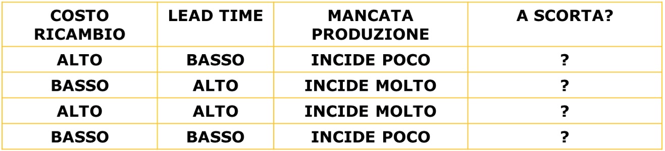 Quindi il primo problema da affrontare e risolvere è quello di comprendere quale ricambio mettere a stock.