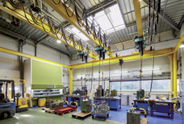 Prima dell'installazione dei carriponte EUROPONT, le tre postazioni di lavoro erano servite da un'unica gru a bandiera. Trattandosi di movimentare stampi metallici il cui peso varia dai 50 ai 1500 kg, è necessario procedere con molta cautela, e gli attrezzisti andavano incontro a numerosi tempi morti, nell'attesa che la gru fosse disponibile. È stato pertanto deciso di rendere autonome le singole stazioni, dotandole di un proprio carroponte con due paranchi VERLINDE da 1,6 T di portata utile. I tre carriponte EUROPONT si spostano sulla stessa struttura metallica e per evitare urti accidentali sono stati installati appositi finecorsa.