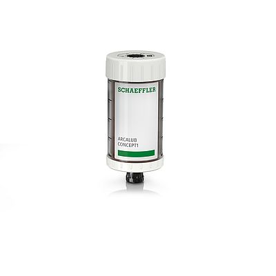 I cuscinetti volventi vengono riforniti automaticamente con la corretta dose di lubrificante tramite lubrificatori e sistemi di lubrificazione. In questo modo si evita la causa più frequente di danneggiamento dei cuscinetti volventi: la lubrificazione insufficiente o errata. Circa il 90% di tutti i cuscinetti è lubrificato con grasso. La rilubrificazione con la giusta quantità di grasso ad intervalli corretti determina un aumento significativo della vita operativa dei cuscinetti volventi. CONCEPT1 è il prodotto base economicamente più vantaggioso per la rilubrificazione automatica. È facile da gestire, robusto, certificato secondo la direttiva ATEX, e conforme alla classe di protezione IP68. Questo lo rende ideale per un’ampia gamma di applicazioni, ed è fornito in alternativa preriempito con grasso ARCANOL Schaeffler ad alte prestazioni, oppure come dispositivo vuoto che può essere riempito più volte con il grasso o l’olio lubrificanti del cliente. Questo riduce lo spreco, salvaguarda l’ambiente e consente risparmi sui costi di manutenzione.