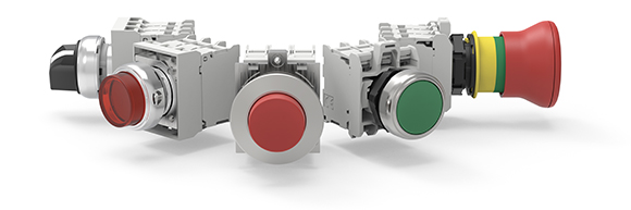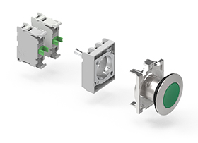 Gli elementi di contatto sono comuni a tutte le versioni della serie. Combinano dimensioni miniaturizzate a elevata conducibilità elettrica favorendone l’utilizzo in ogni tipo di applicazione. Possono essere impilati fino a un massimo di 9 elementi e sono disponibili versioni con attacchi a vite, a molla (con tecnologia push-in), Faston e per il montaggio sul fondo delle pulsantiere plastiche LPZP. Per i pulsanti a fungo ad aggancio sono disponibili elementi di contatto ad auto-monitoraggio con la funzione di controllo costante del corretto montaggio e del funzionamento del contatto NC e di apertura circuito in caso di malfunzionamenti vari.