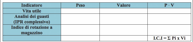 dove Pi e Vi rappresentano rispettivamente il peso e il valore di ciascuno dei tre indicatori presentati in tabella 1, in cui ai pesi va associato un numero compreso nell'intervallo 0÷1, mente i valori vanno uniformati all'interno di un intervallo comune, con valori compresi tra 1÷5.