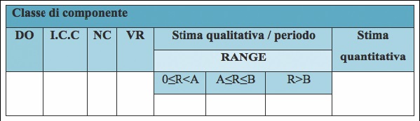 - prima colonna: individuazione di alcuni indicatori al fine del calcolo del livello di criticità, per ciascuna classe dei componenti;